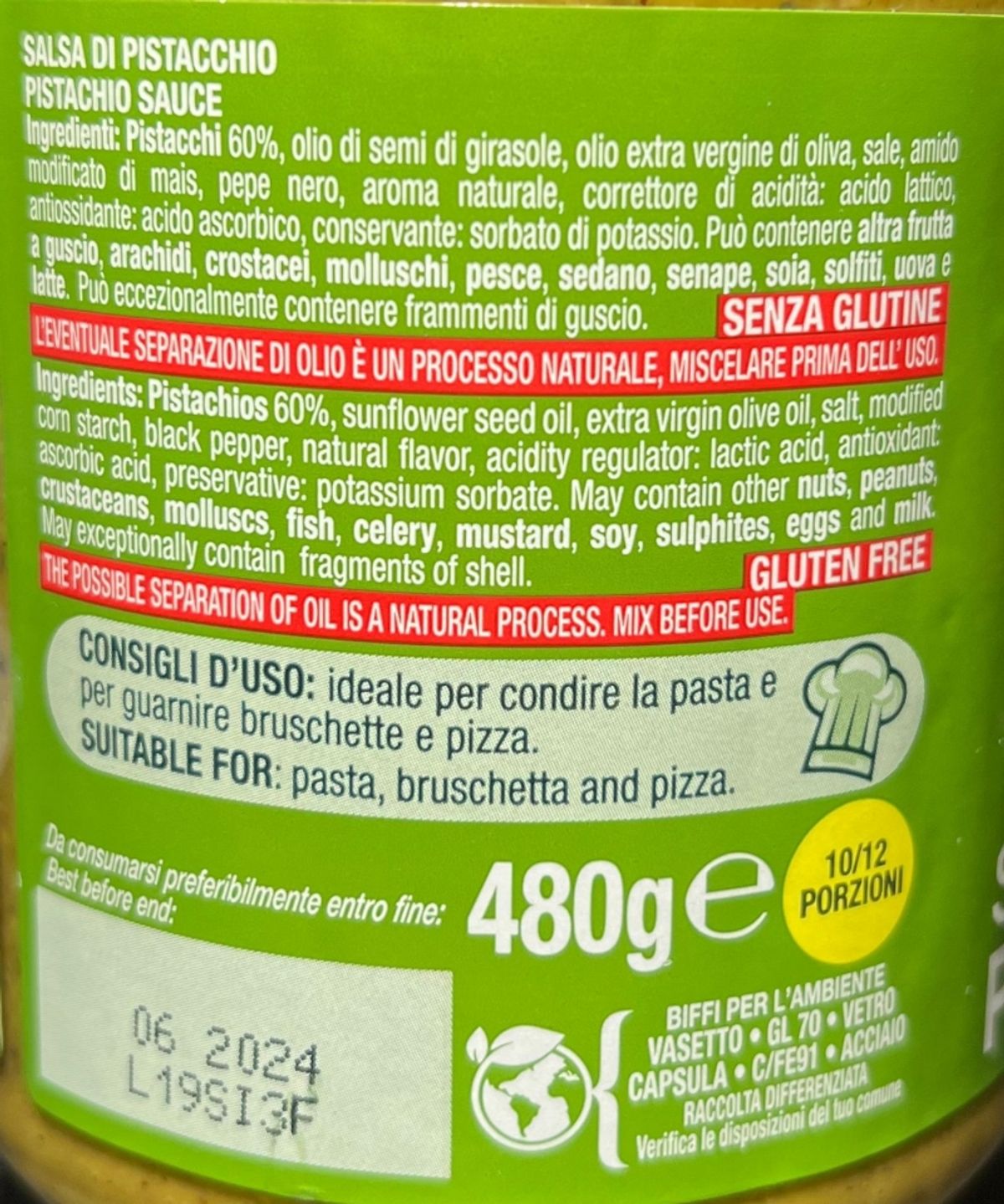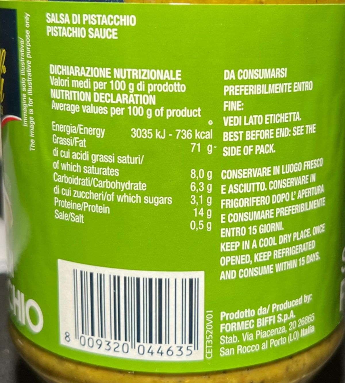 La Salsa di Pistacchio Biffi da 480 grammi è una prelibatezza gourmet, perfetta per arricchire una varietà di piatti con il suo sapore unico e delicato. Realizzata con pistacchi di alta qualità, questa salsa offre una consistenza cremosa e un gusto ricco e raffinato. Ideale per condire pasta, risotti, carni bianche e pesce, oppure da spalmare su crostini e bruschette, la Salsa di Pistacchio Biffi trasforma ogni piatto in un'esperienza culinaria straordinaria.