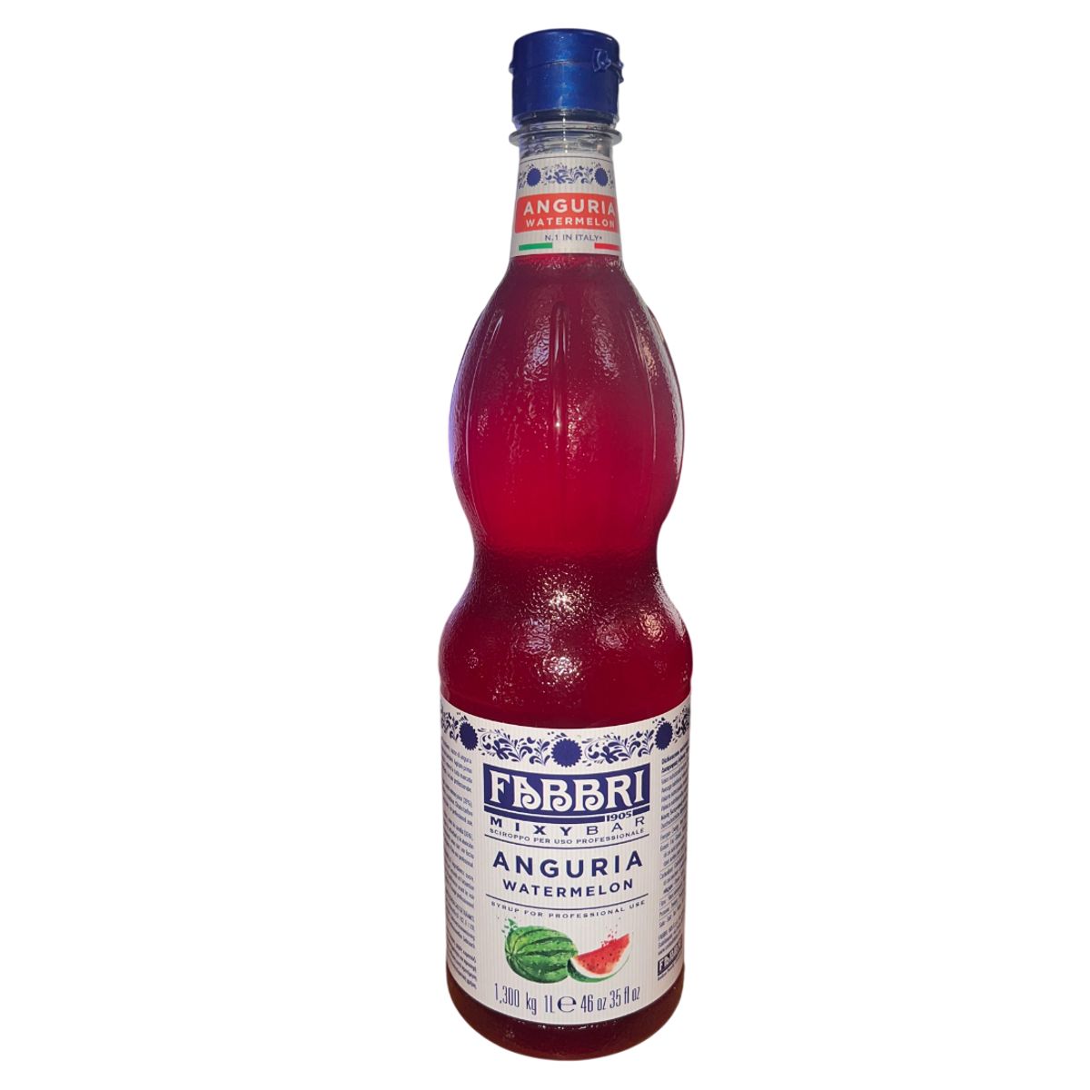 Sciroppo all'anguria ad alta concentrazione, perfetto per la preparazione di cocktail, granite e bevande estive. Gluten Free. Uso professionale.