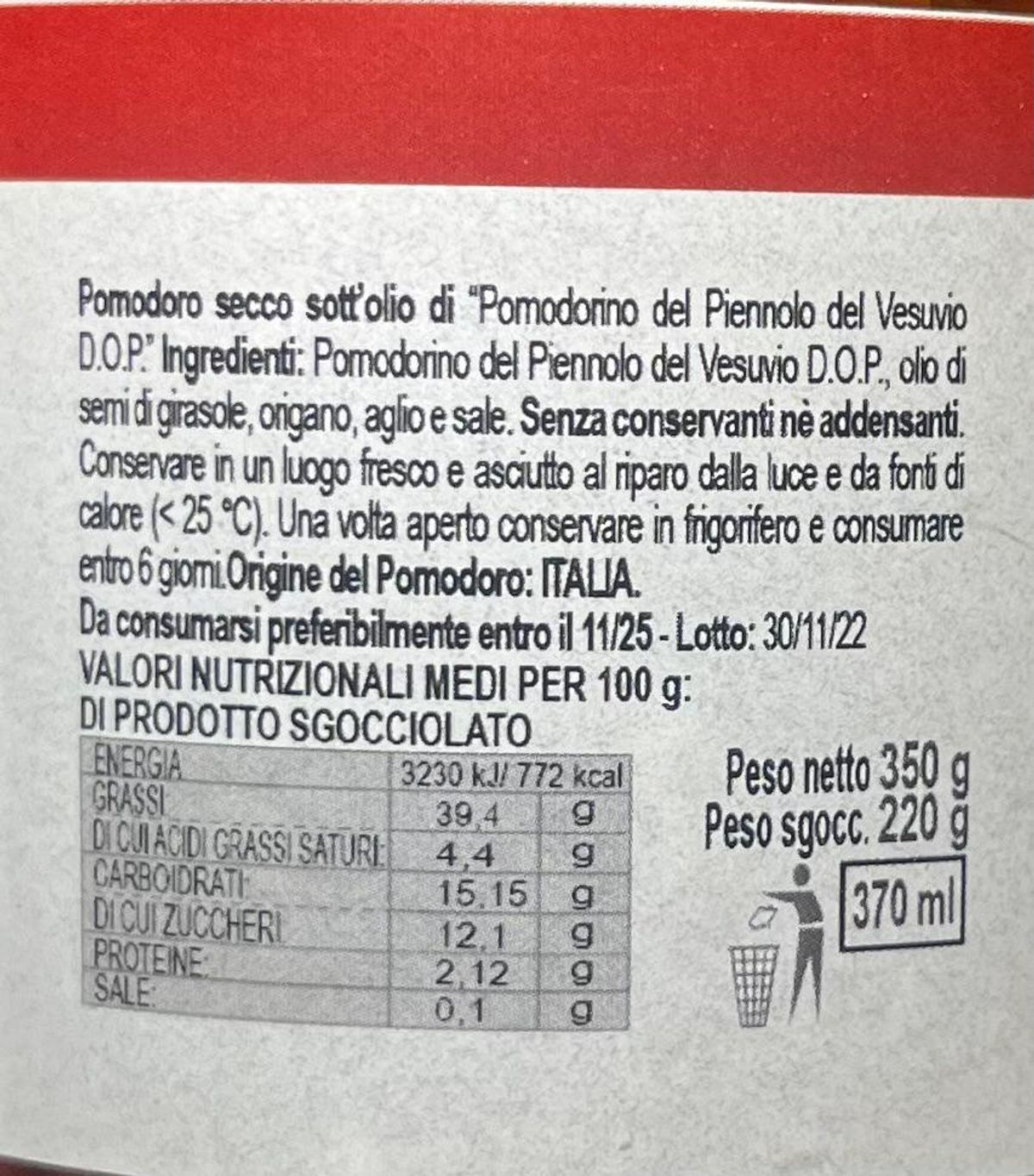 L'Oro del Vesuvio Semy-Dry Tomate cerise Piennolo del Vesuvio D.O.P 350 Gr.